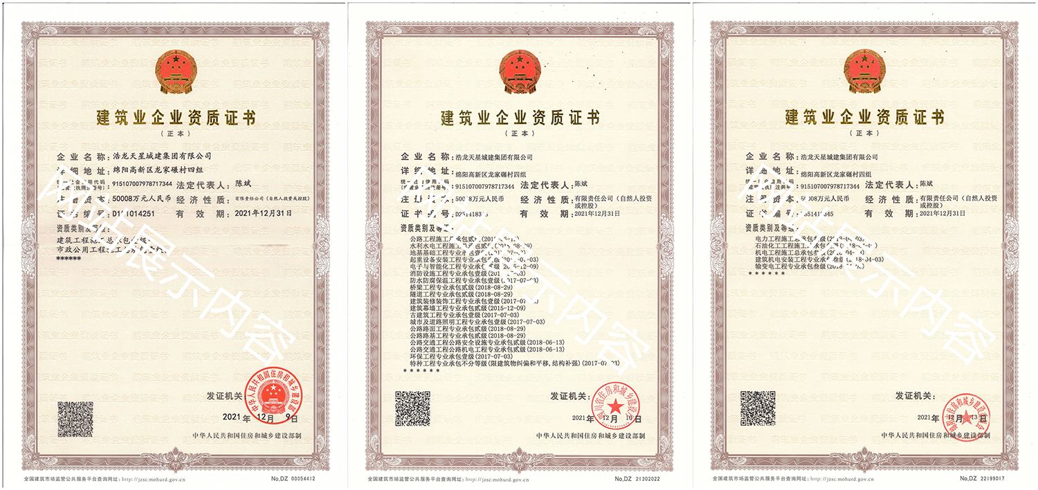 浩龍?zhí)煨浅墙瘓F(tuán)有限公司,2007年成立于“李白故鄉(xiāng)、中國(guó)科技城”—四川省綿陽市,企業(yè)注冊(cè)資本金5.0008億元。公司共有27項(xiàng)建筑業(yè)企業(yè)資質(zhì),其中國(guó)家一級(jí)資質(zhì)11項(xiàng),二級(jí)資質(zhì)10項(xiàng),三級(jí)資質(zhì)5項(xiàng),特種資質(zhì)不分等級(jí)1項(xiàng),類別涵蓋建筑、市政、水利、機(jī)電、隧道、起重設(shè)備安裝等基礎(chǔ)及未來發(fā)展重點(diǎn)專業(yè)。公司...